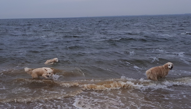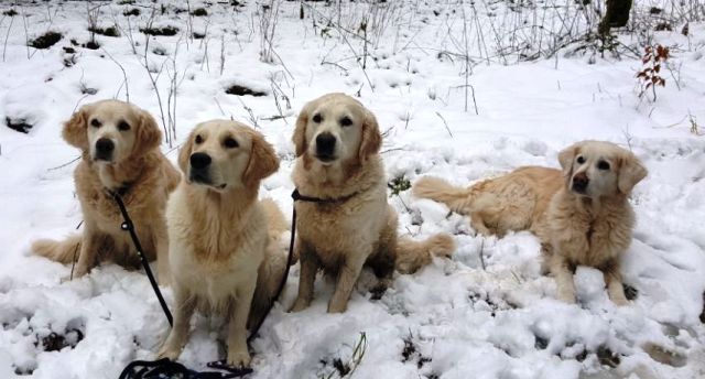 Von hinten nach vorne: Annie, Lilli, Sam und Mika! Frisch, nach gemeinsamem Bad :)