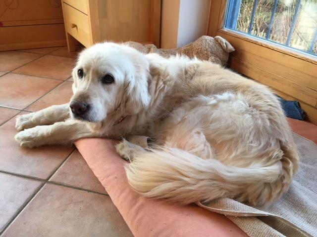 Bis zuletzt hat er tageweise im Haus St. Josef, mit seiner Sabine, als Therapiehund gearbeitet.
