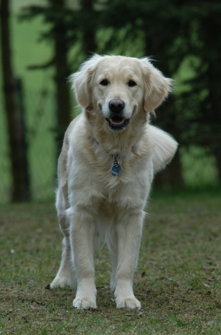 cremefarbene Hündin, vorzüglicher Kopf, sanfter Ausdruck, kompl. Schere,
