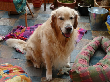 haben den Golden Retriever "Amadeo Dusty behind the picket fence"
