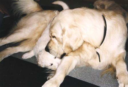 Dusty hat immer unsere Welpen besucht, sehr liebevoll hat er seine Halbgeschwister und