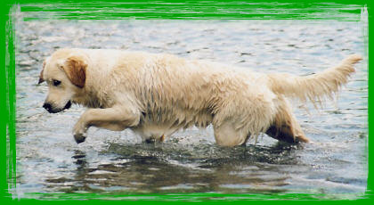 Die 14 Monate alte Goldenhündin zeigte sich temperamenvoll und bewegungsfreudig. Ihre jagdlichen Anlagen wurden in ausgeprägter Form sichtbar. Die Bindung ist gut, im Kreis sicher, optisch und akustisch im allgemeinen sicher. Im Kontakt mit Fremdpersonen freundlich, sie ist schußfest.