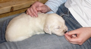 Die Zeit der Wurfkistenreinigung verbringen sie jetzt unter Aufsicht von Joe (sehr zu ihrer Freude)