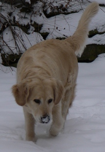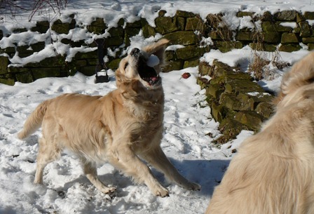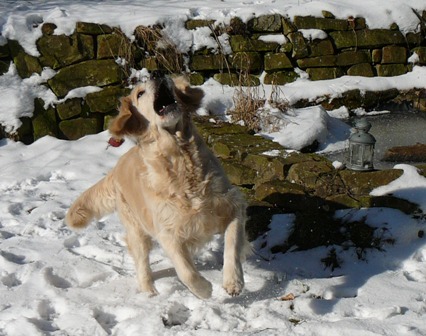 Heute drehte sie dann völlig auf, kullerte sich im Schnee und hüpfte durch die Gegend.. mit einem