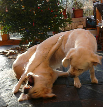 Sie ist total aufgekratzt, fordert Joe (die sich in ihrem Zyklus momentan eher in einer Zeit des Welpen