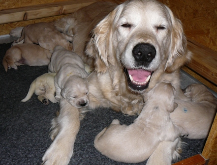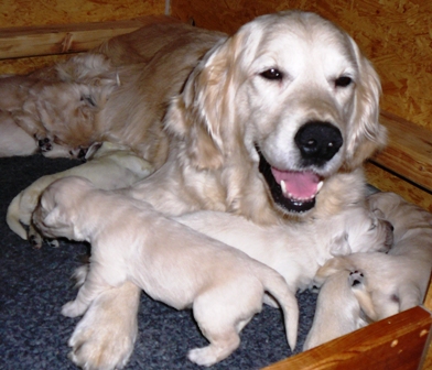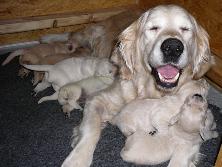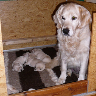 Unbezahlbar ist eine so gute Hundemama, die alles im Griff hat, die kuschelige Wurfbox