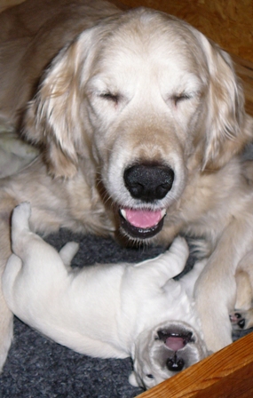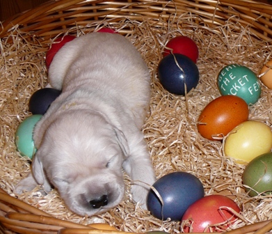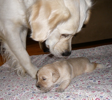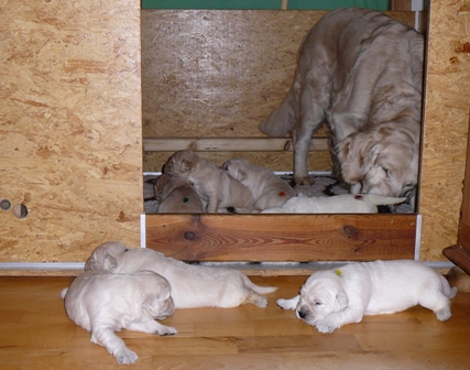 Joe ist jetzt sehr interessiert an den Kleinen, sie darf aber nicht in die Wurfkiste, da sagt Lilli
