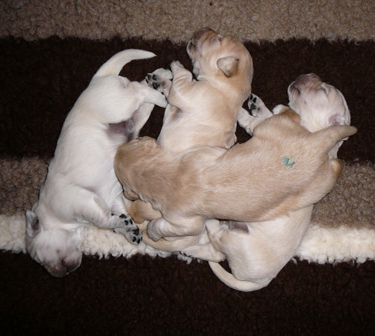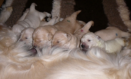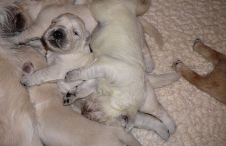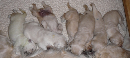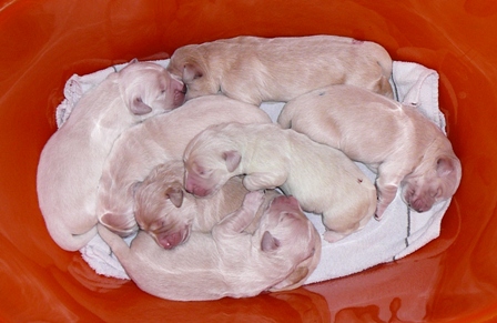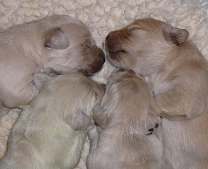 Bis auf die zierliche braune Hündin wiegen alle weit über 900 g :)