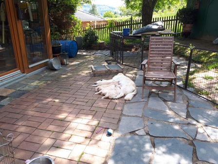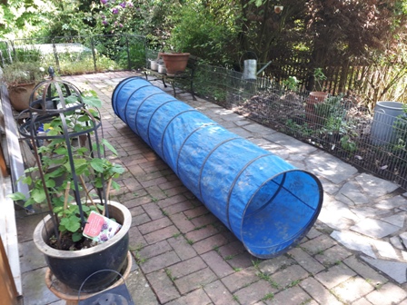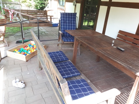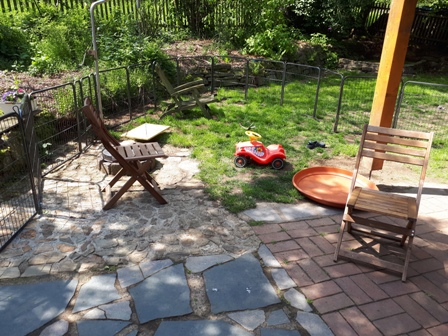 Endlich mal schönes Wetter, ich habe den Freilauf welpensicher gemacht und richte jetzt so nach und nach alles ein.