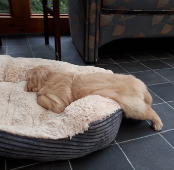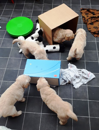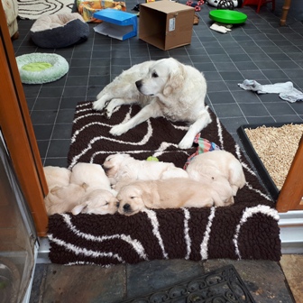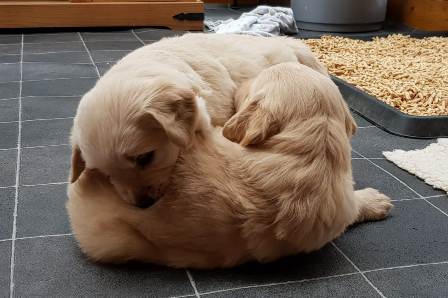 legen wir sie momentan noch in die Wurfkiste im Wohnzimmer, da es im Wintergarten noch so kühl ist.