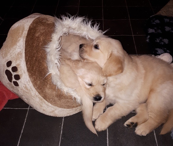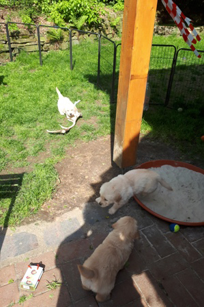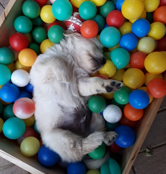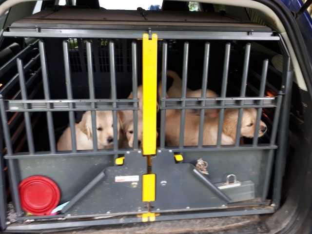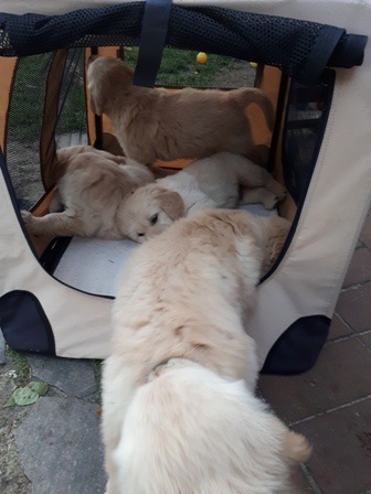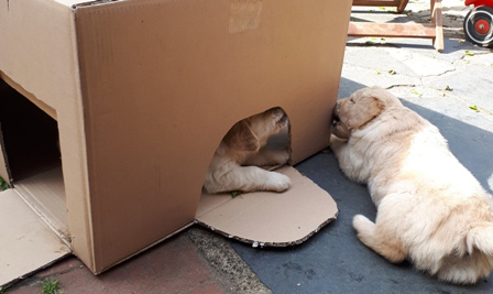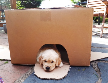 Die ersten Kisten kommen ins Welpenzimmer, die sind soo toll zum Spielen..
