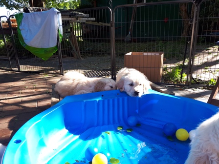 Wasser ausgekippen und mit dem Bauch reinlegen, das lieben sie :)