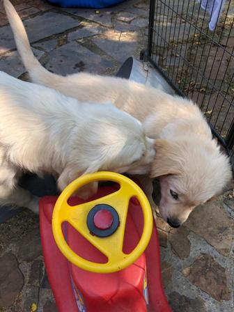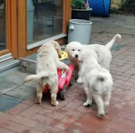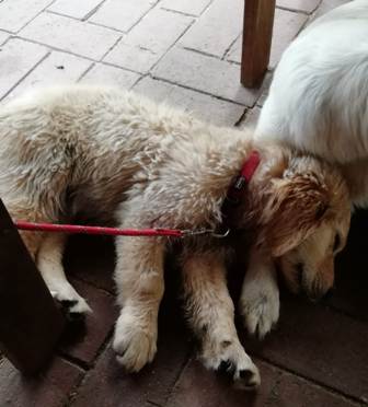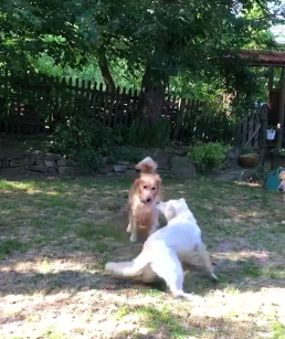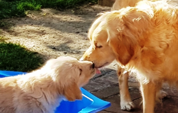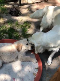 Voller Freude begrüßt Phoebe ihre Babys und Papa Mighty :) :) Er und Opa Sando werden auch begrüßt!