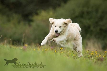 Golden Hündin zeigt sich sehr temperamentvoll und bewegungsfreudig,