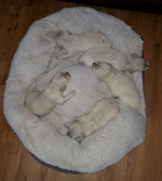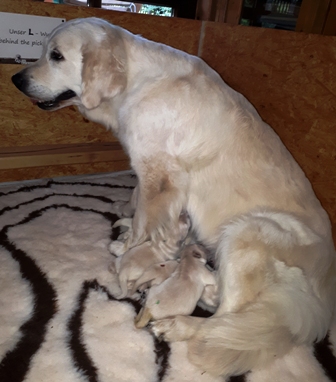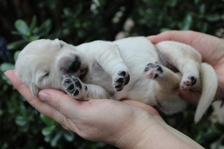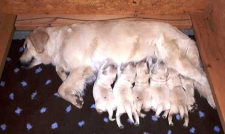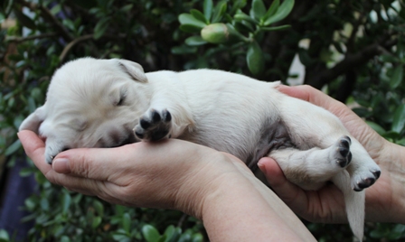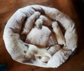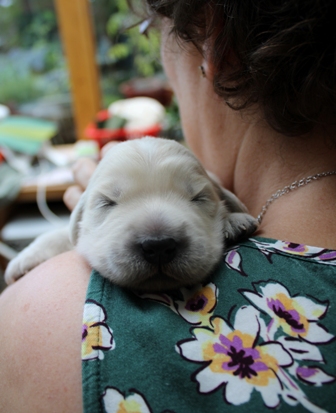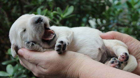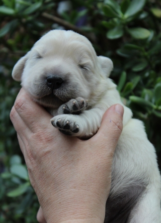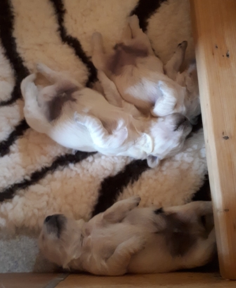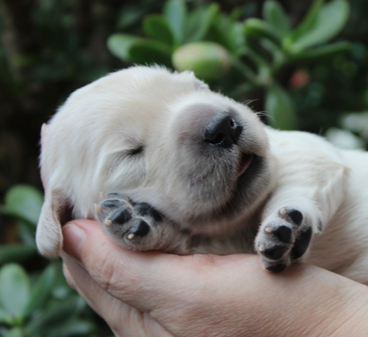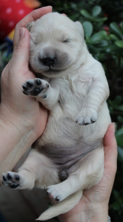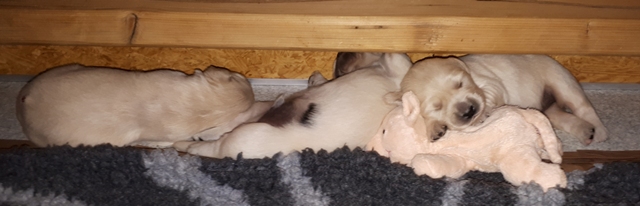 Die Augen sind nun offen, es wird auf allen Vieren gelaufen und auch schon gewedelt, wenn man sie begrüßt!