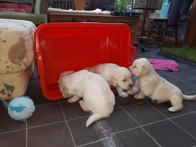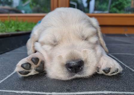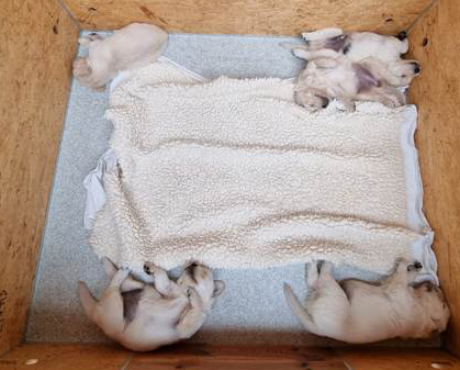 Aber geschlafen wird immer noch sehr brav in der Wurfbox, die jetzt auch im Wintergarten steht.