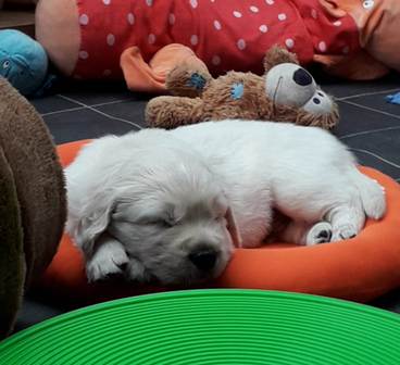 Nachts schlafen wir immer noch ganz brav in der Wurfbox... und...