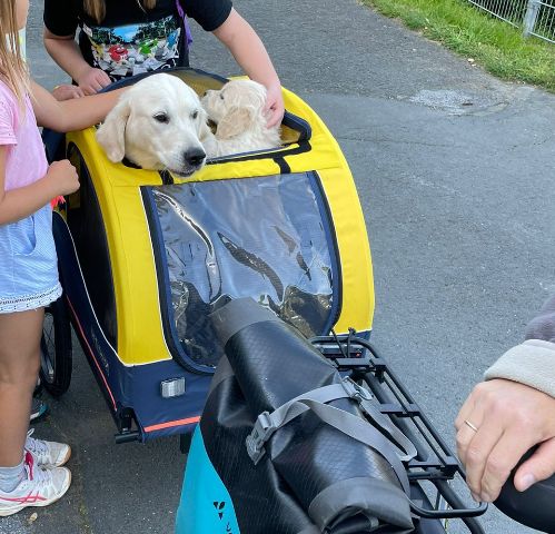 Mama und Lillis üben Fahrradanhänger fahren (Danke Melli :) und kommen nicht weit :) Ohh wie goldig :) Ja!! :)