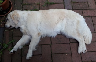 Dann begann Phoebe zu Pressen... und nach einer halben Stunde stand sie wieder am Wassernapf..