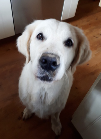 gerade steht sie schwanzwedelnd ich der Küche und freut sich über ein Stück Fleischwurst :)