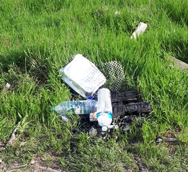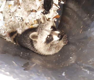 Ein noch sehr kleiner Waschbär hatte sich in unserm Mülleimer gütlich getan, alles schön zerrupft..