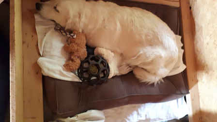 und am Morgen haben wir sie mit Bett umgesiedelt in die Wurfkiste: