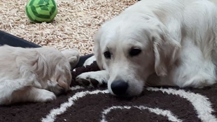 Die 22 Monate alte Golden Hündin zeigt sich heute ausgeglichen im Temperament
