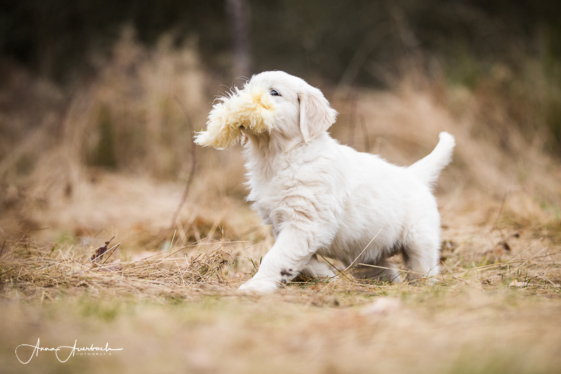 Dennoch lustig und ungestüm, apportiert so gerne, hat die Wasserliebe und alle guten Dinge