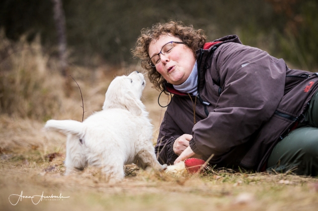 Zu ihren Menschen hat sie eine vertrauensvolle Bindung, sie ordnet sich gerne unter.