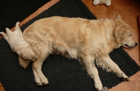Einen neuen Lieblingsschlafplatz haben wir auch (unter die Kante in der Wurfkiste passen wir ja nicht mehr :)