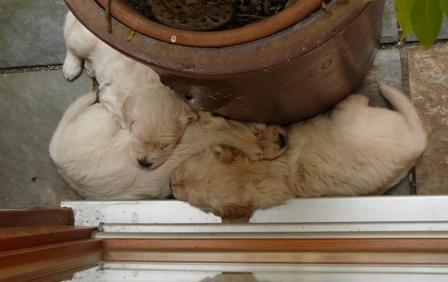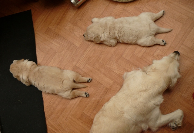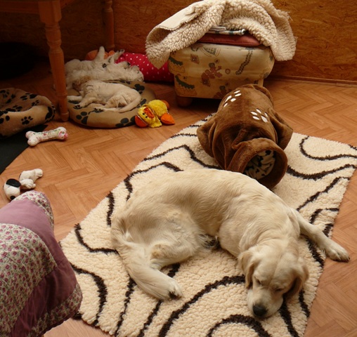 Sie schlafen gerne und lange, nach wie vor... ab und zu einzeln.. oder auf einem Haufen :) Joe immer in der Nähe.