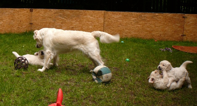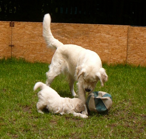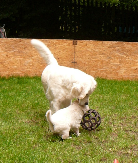...aber wird auch schon mal in die Pfote gebissen, damit sie den anderen Ball loslässt :D