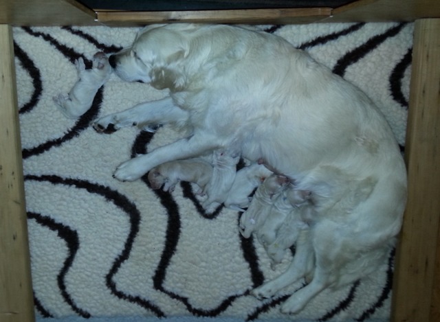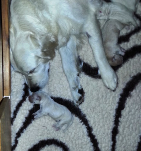Aber Joe ruft mich ganz alleine, wenn ein Welpe hinter ihr liegt. Sie macht ihre Sache sooo gut!