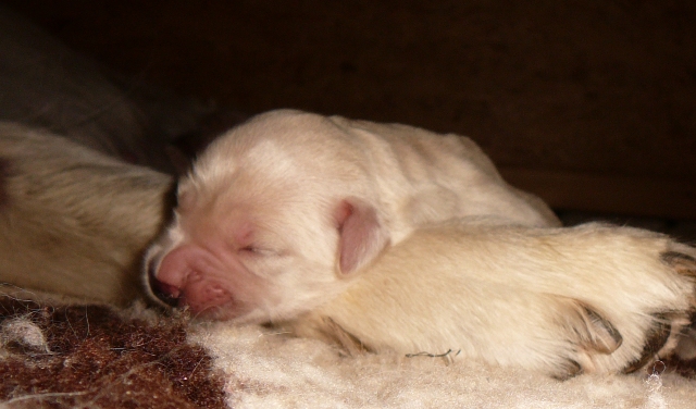 Sobald heute Nacht ein Welpe auch nur mal gejuchzt hat, hatte ich Lillis Nase im Gesicht: