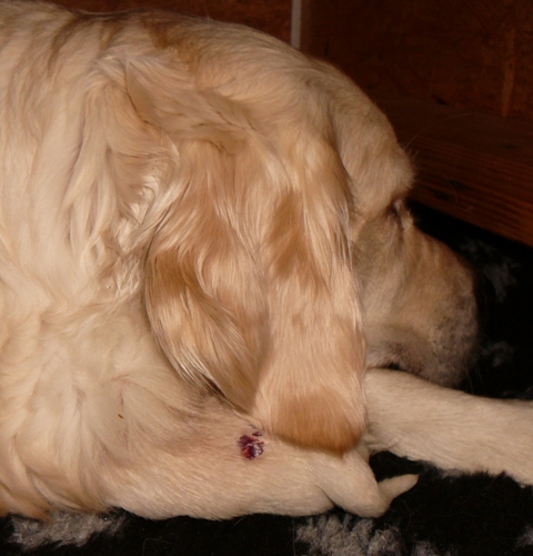 Anscheinend reagiert Joe allergisch gegen den Kleber (wie ich übrigens auch auf Pflaster :(
