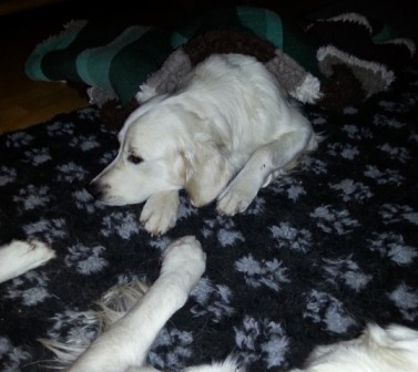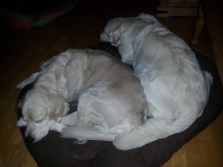 So sah die Nacht aus.. Joe lag entweder dicht bei Mama Lilli oder bei mir und war sooo unruhig..