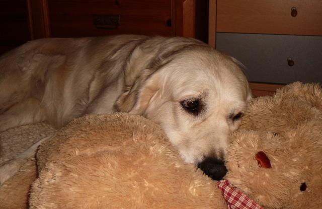 Hier wird sie gerade aus der Narkose wach, Joe hält ihr fast die Pfote... :)