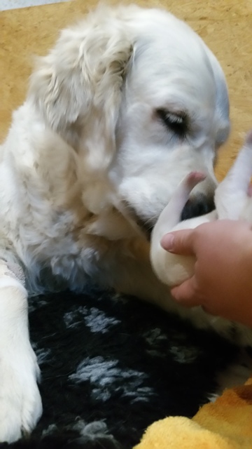 Bei ihr in der Wurfkiste sitzen konnte ich bis gestern nicht, aber langsam geht es.