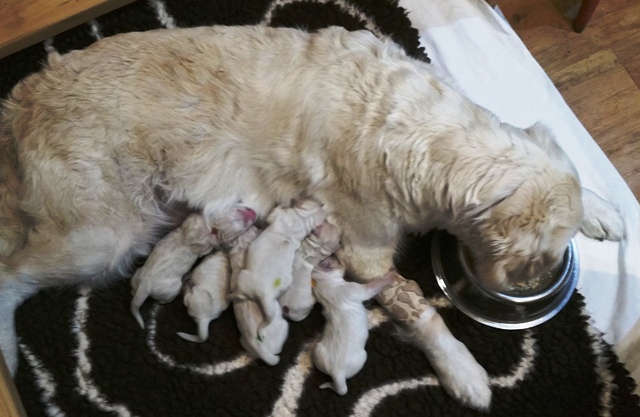 Und so konnten wir mit einer noch fast schlafenden Joe und sechs wunderbaren Welpen nach Hause fahren.